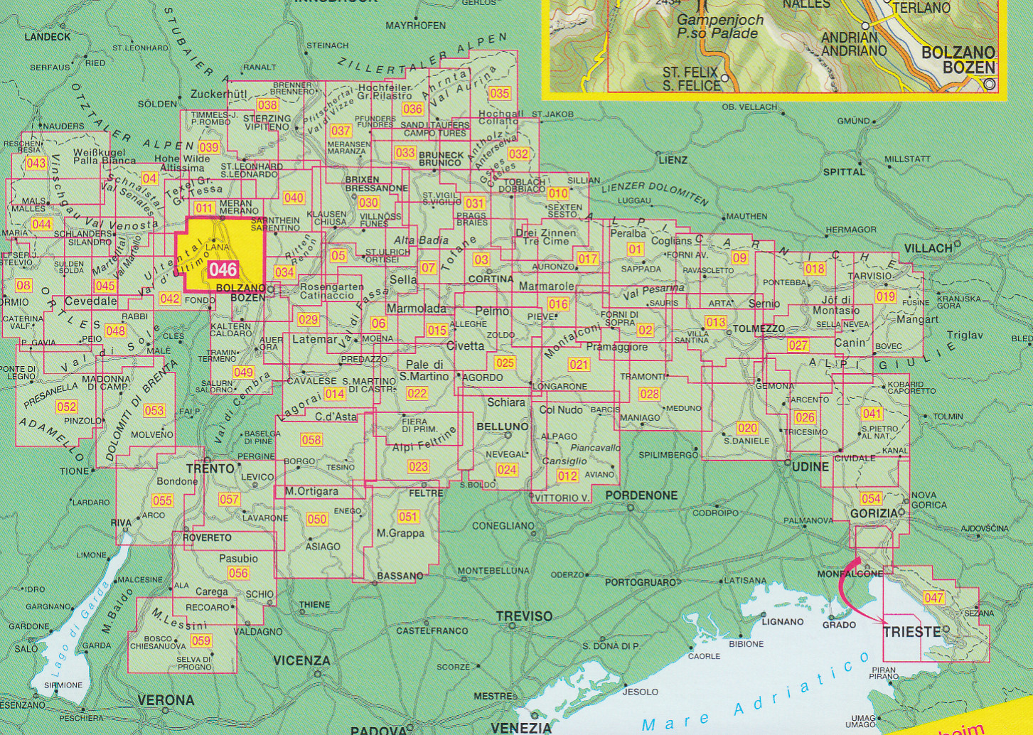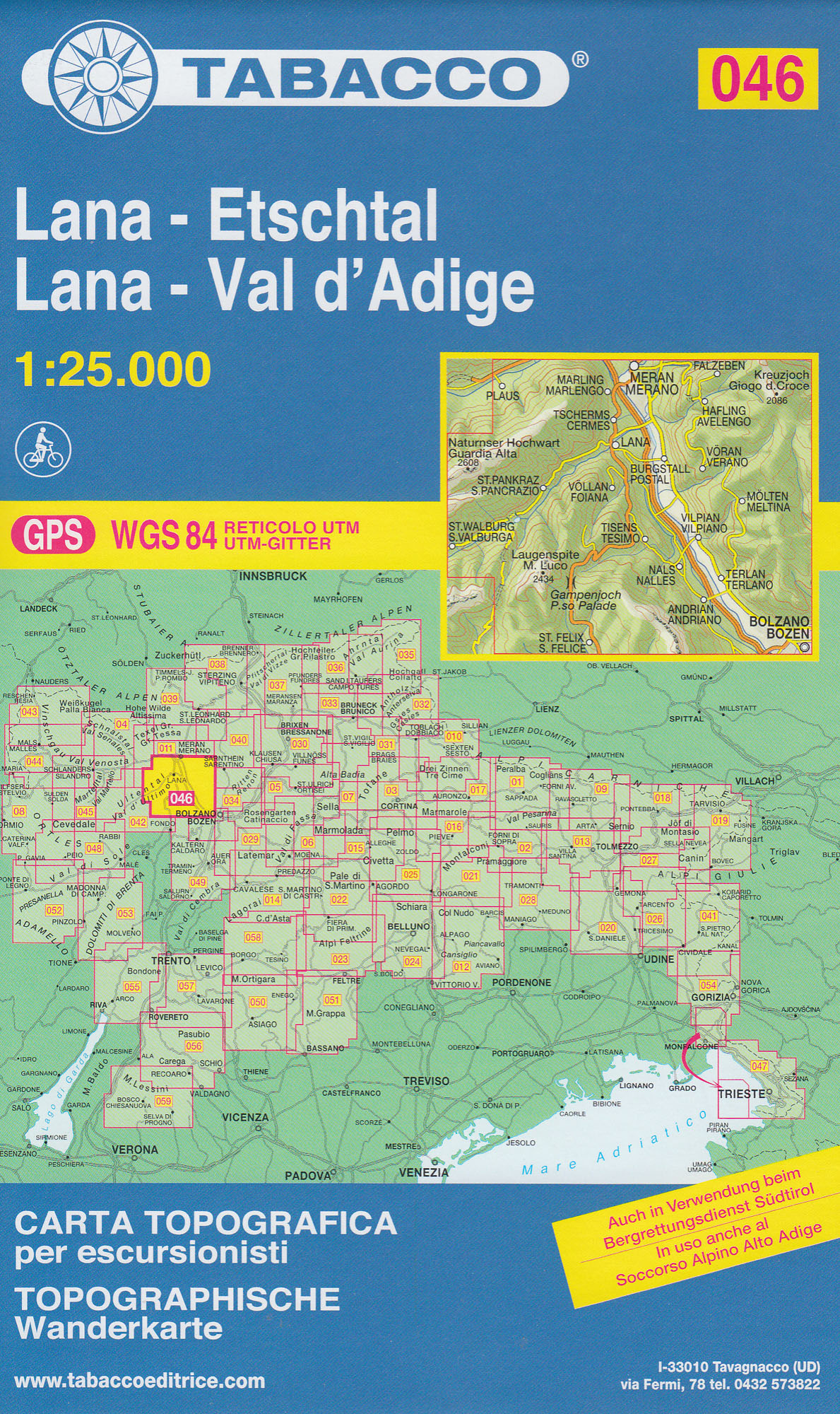 Lana, Etschtal, Val d´Adige 1:25 000 turistická mapa TABACCO #46