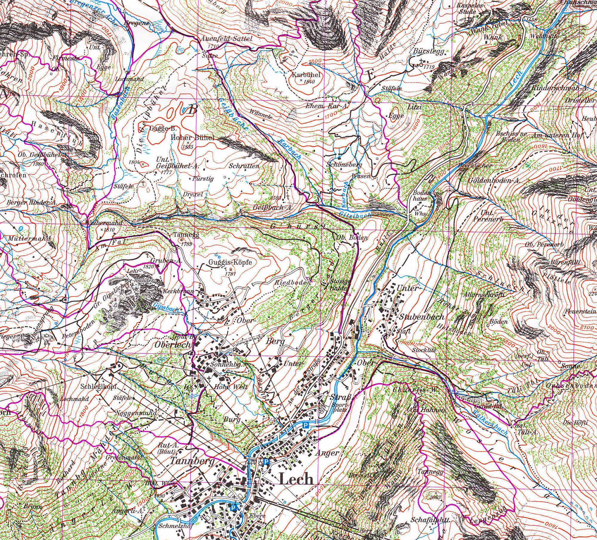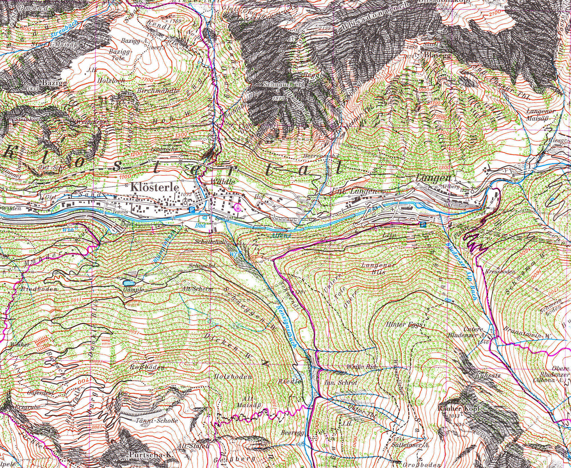Velice podrobná mapa ze série turistických a lyžarských map vydávaných Německo-Rakouským alpským spolkem. Vrstevnice jsou zakresleny po 20 výškových metrech. Na mapě jsou vyznačeny turistické trasy s úseky fixního jištění, kempy, horské chaty a jiná ubytování. Legenda mapy je v němčině.