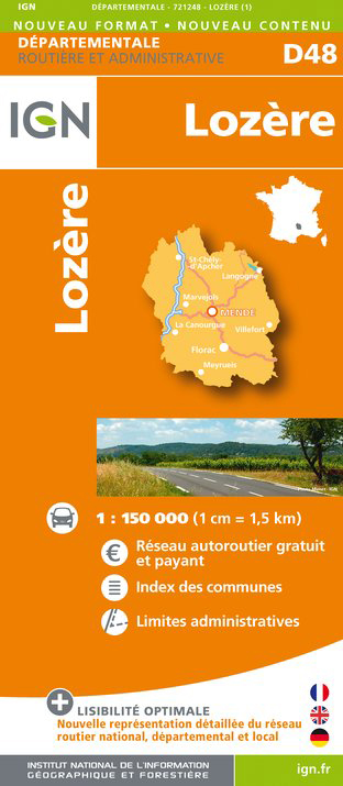 Lozere departement 1:150.000 mapa IGN