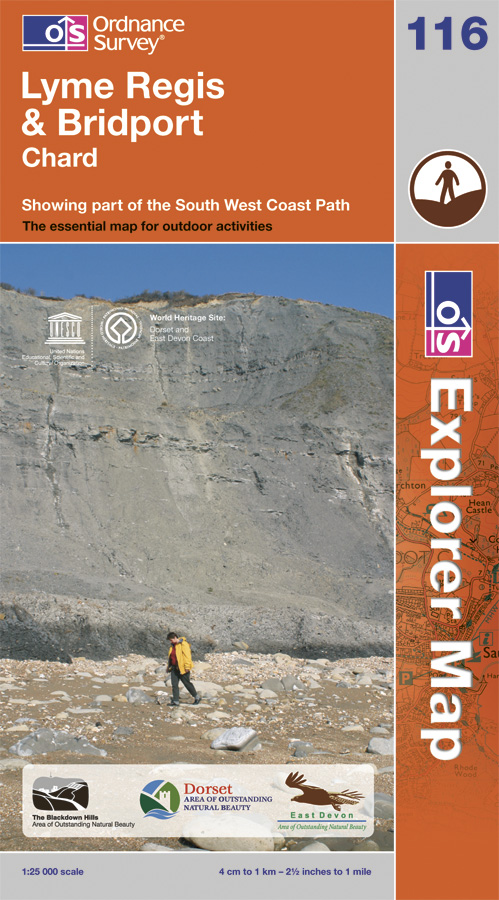 Lyme regis / Bridport 1:25.000 turistická mapa OS #116