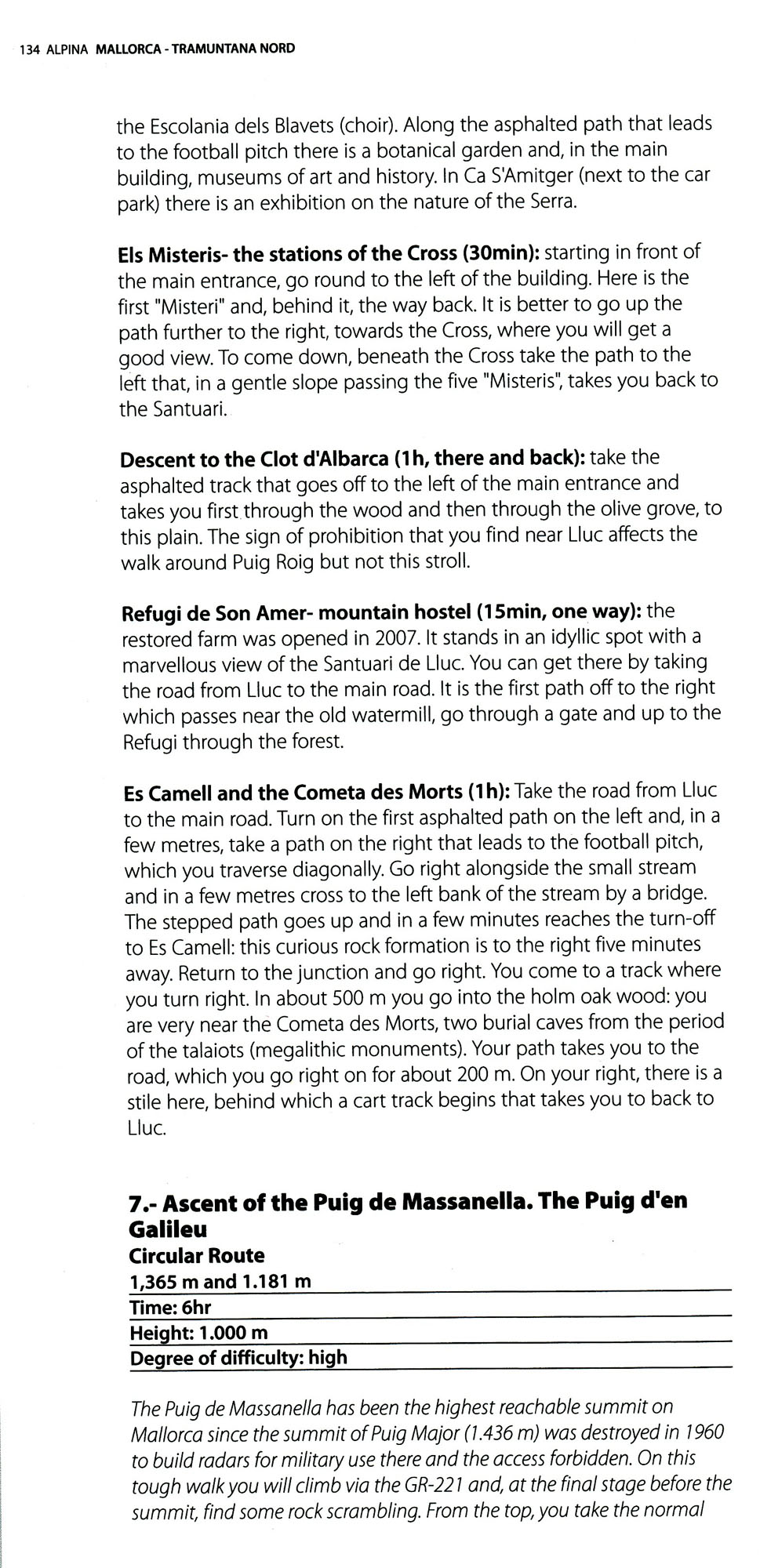 Rozsáhlá a velmi populární série pěších map od vydavatelství Alpina pokrývající Pyreneje, Katalánsko a další vybrané turistické oblasti ve Španělsku, včetně Malorky. Měřítka se pohybují od 1:50.000 do 1:10.000 - většina titulů je však v měřítku 1:25.000. Mapy mají vrstevnice, obvykle v intervalech 20 m nebo 10 m, se stínovaným reliéfem a kótami. Mapa klasicky zobrazuje turistické trasy, dálkové trasy, kempy, horské chaty, boudy, horolezecké lokality, jeskyně, trasy pro horská kola a jízdu na koni a lyžařská střediska.Všechny nejnovější verze mají UTM systém a značení zeměpisné šířky a délky v intervalu 1 ". Legenda u všech titulů zahrnuje angličtinu.Každý titul má samostatnou brožuru s obecnými informacemi o oblasti, popisy vybraných turistických tras, seznam ubytování s adresami, atd. Ne u všech titulů je to včetně angličtiny – raději se ptejte.