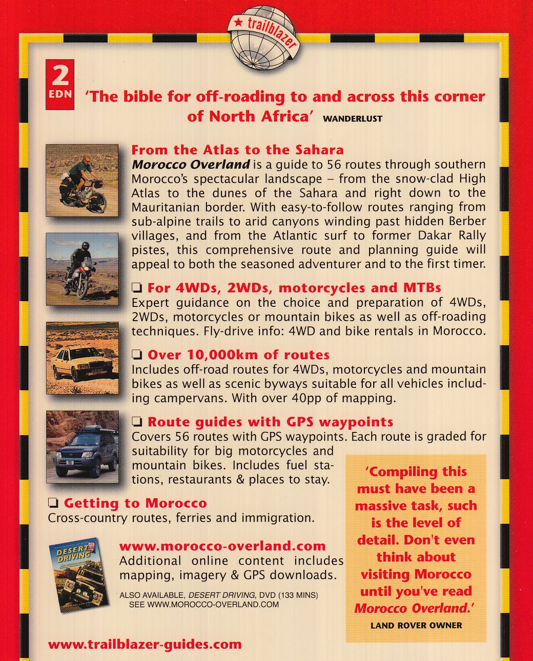 The book also includes guidance on choosing and preparing vehicles, the best places and times to go, getting to Morocco as well as local fly-drive options and off-road driving and riding techniques.