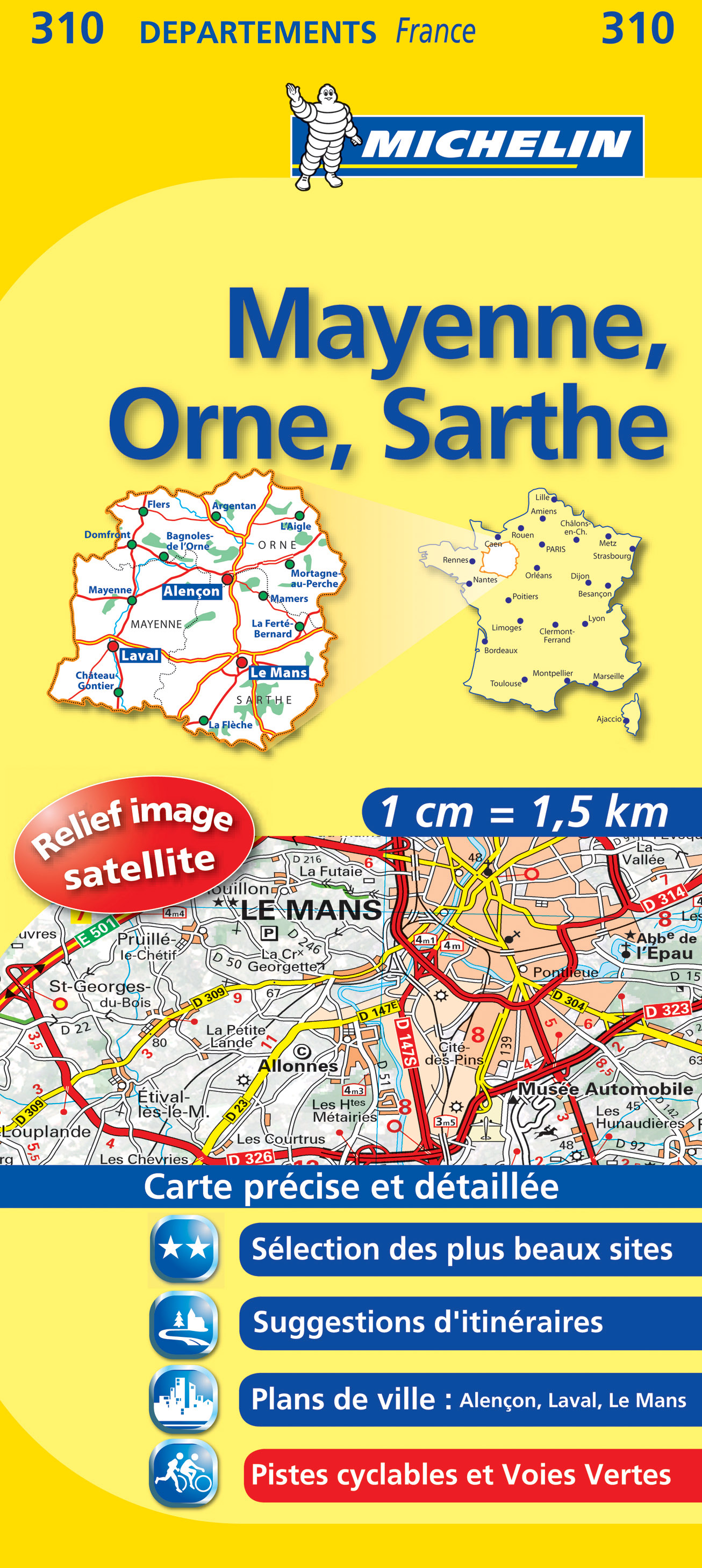 Mayenne, Orne, Sarthe (Francie), mapa 1:150 000, MICHELIN