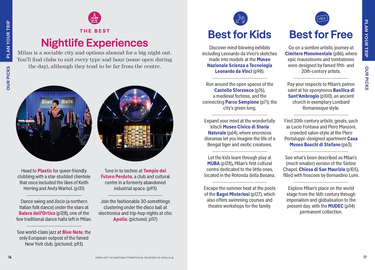 Vibrant photography and maps including a pull out map of Milan