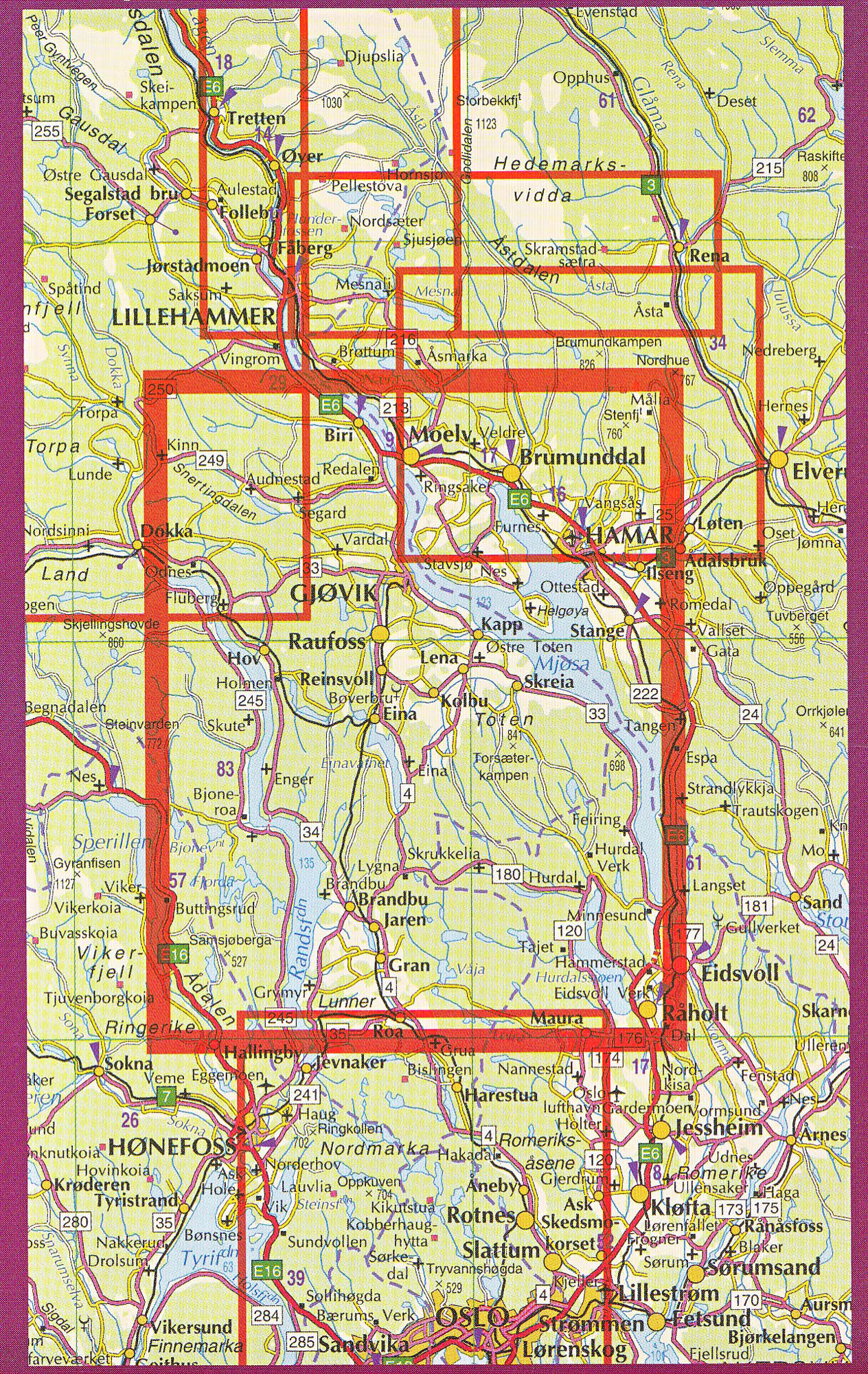 Mjosa-Randsfjorden 1:100.000 mapa (Norsko) #2551