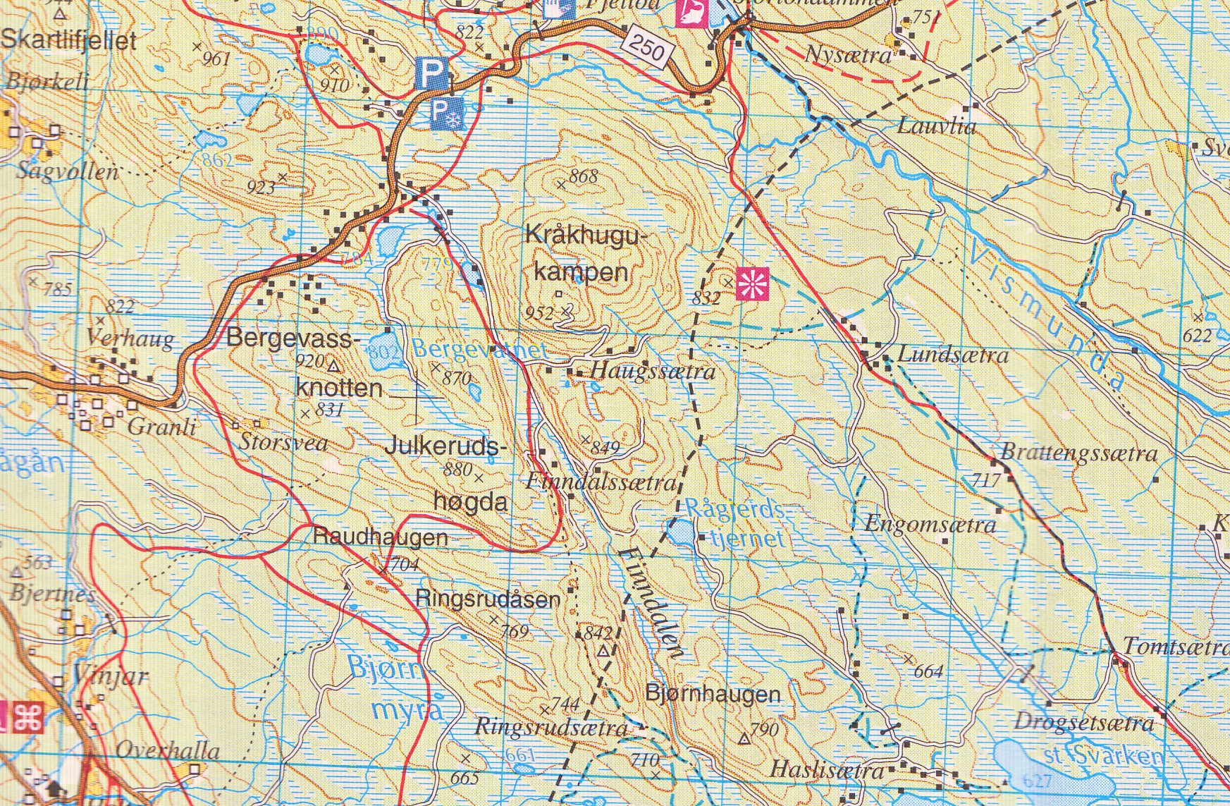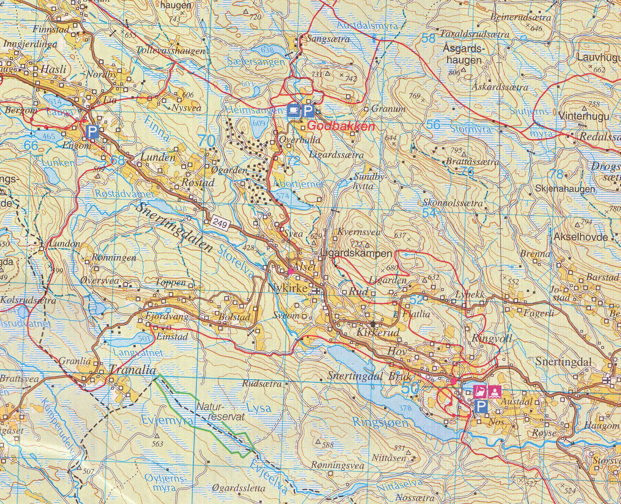 Mapa ze série GPS kompatibilních turistických map v měřítku 1:50.000/1:100.000. Vrstevnice jsou po 20m. Mapy zobrazují veškeré cesty a stezky, horské chaty a kempy, cyklistické nebo lyžařské trasy, jiné možnosti ubytování, sportovní a rekreační zařízení, sjezdovky, zajímavá místa, ledovce atd. (viz. legenda) Mapy mají UTM grid a na okrajích značenou zeměpisnou šířku a délku. Legenda mapy je norsky a anglicky. Některé tituly mají na rubové straně další turistické informace, i když ve většině případů pouze norsky. Od 1.1.2014 je doporučená maloobchodní cena těchto map na norském trhu 199,- NOK (vč. DPH 25%).