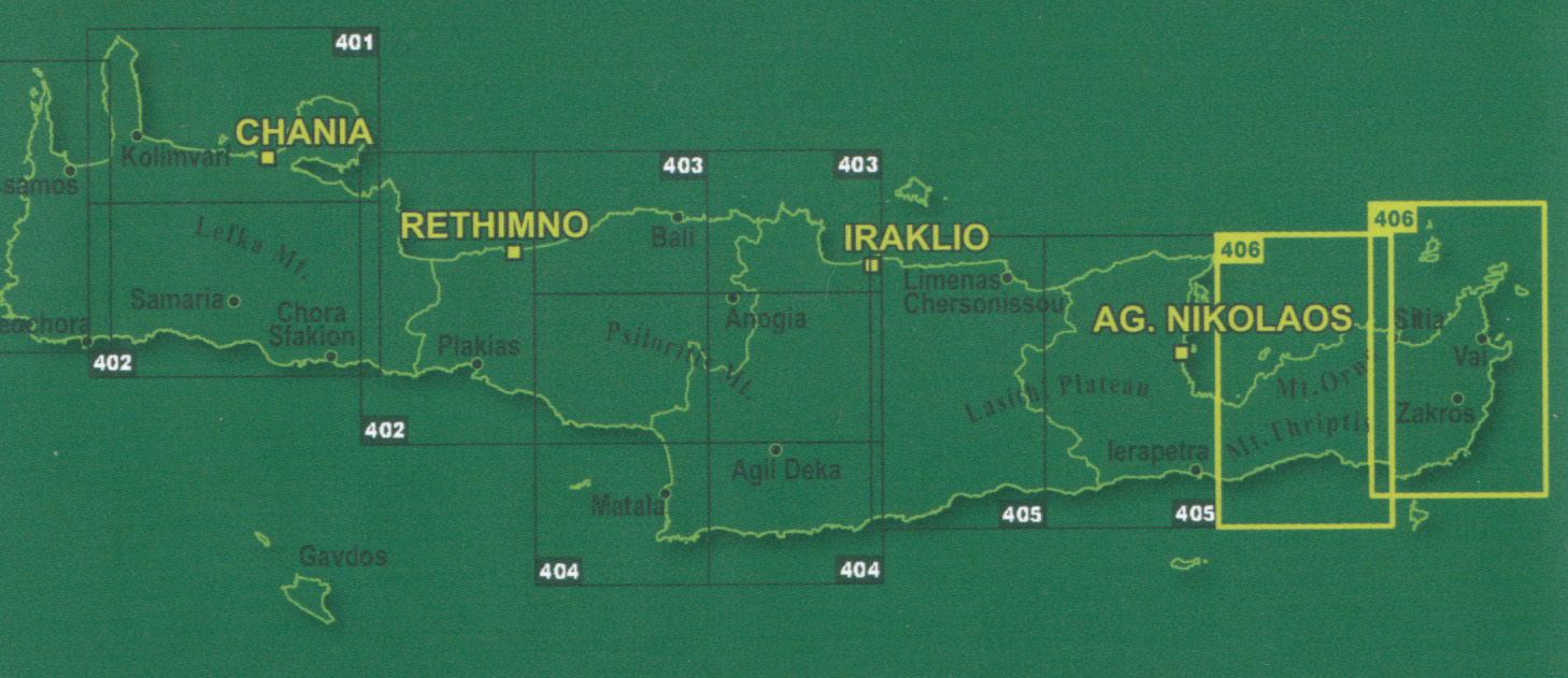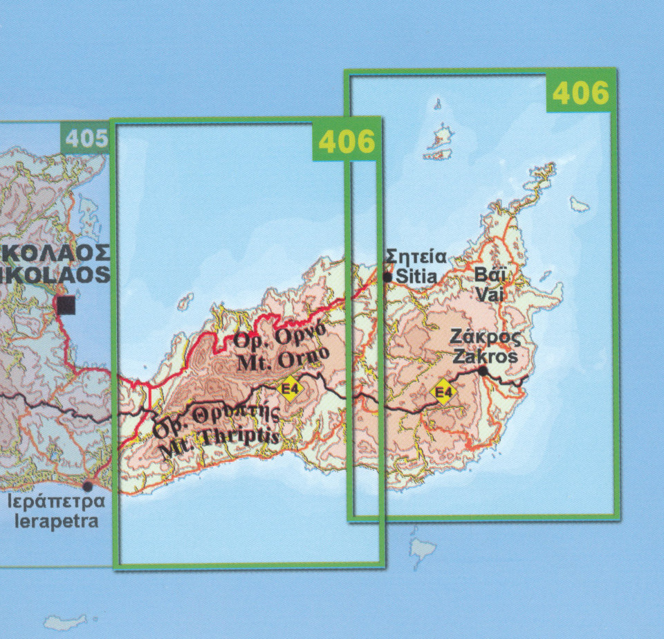 Mt. Thriptis, Zakros, Vai (Kréta) 1:50.000, turistická mapa ORAMA #406