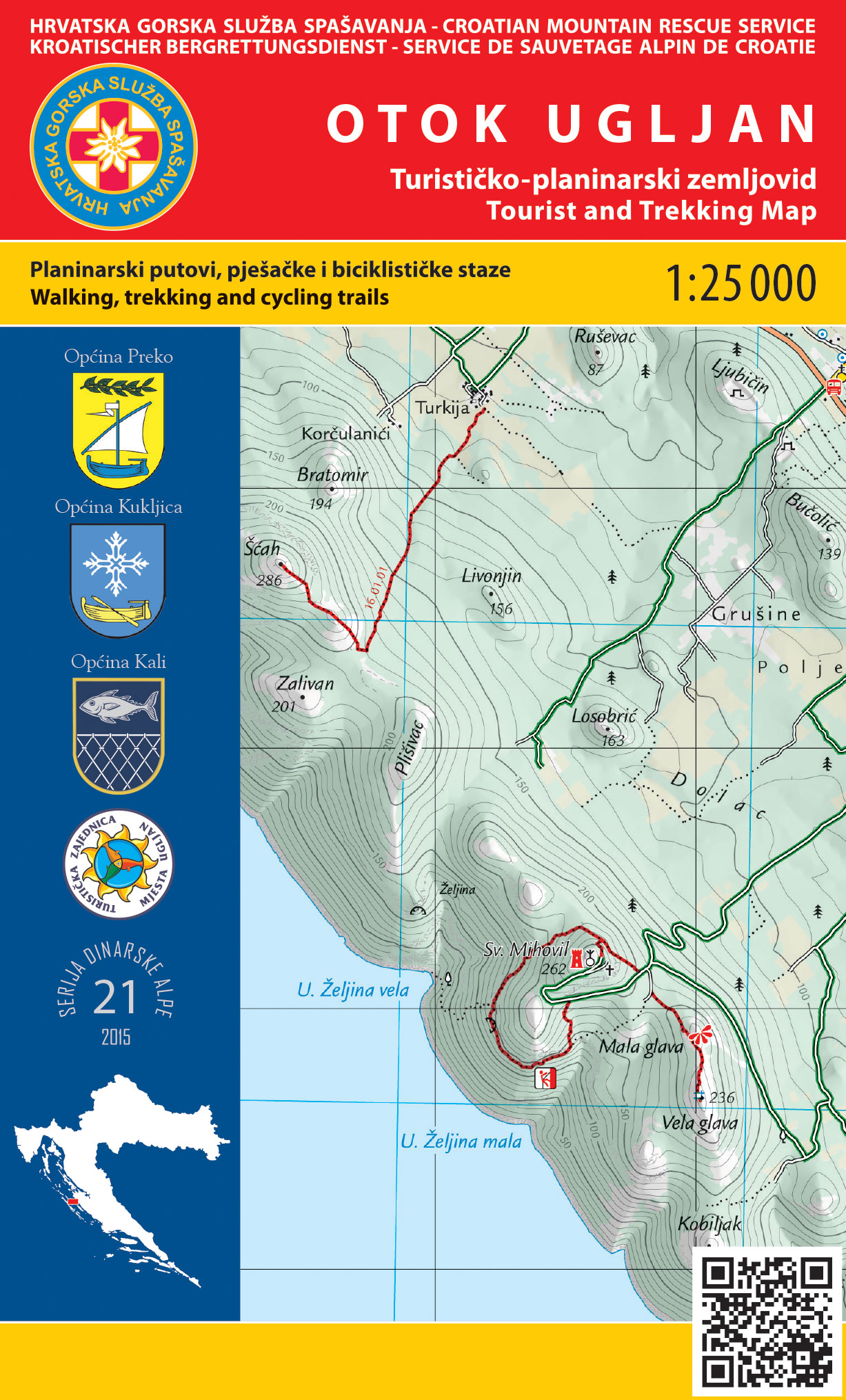 Otok Ugljan 1:25.000 turistická mapa HGSS