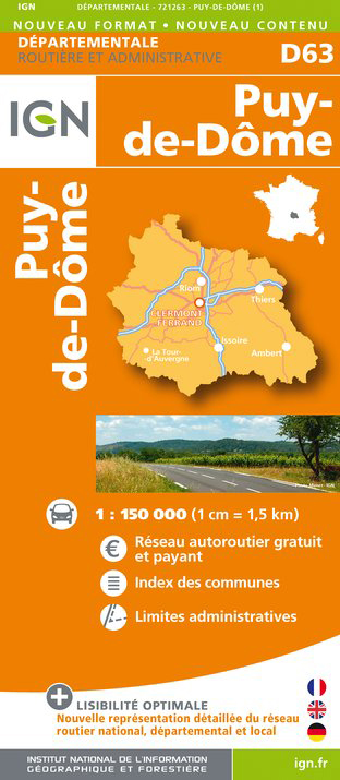 Puy-de-Dôme departement 1:150.000 mapa IGN