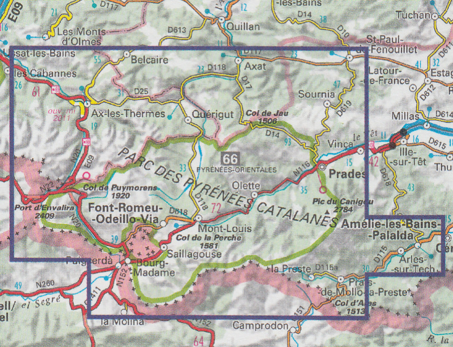 Pyrénées Catalanes, Font-Romeu, Massif Canigou 1:75t mapa IGN