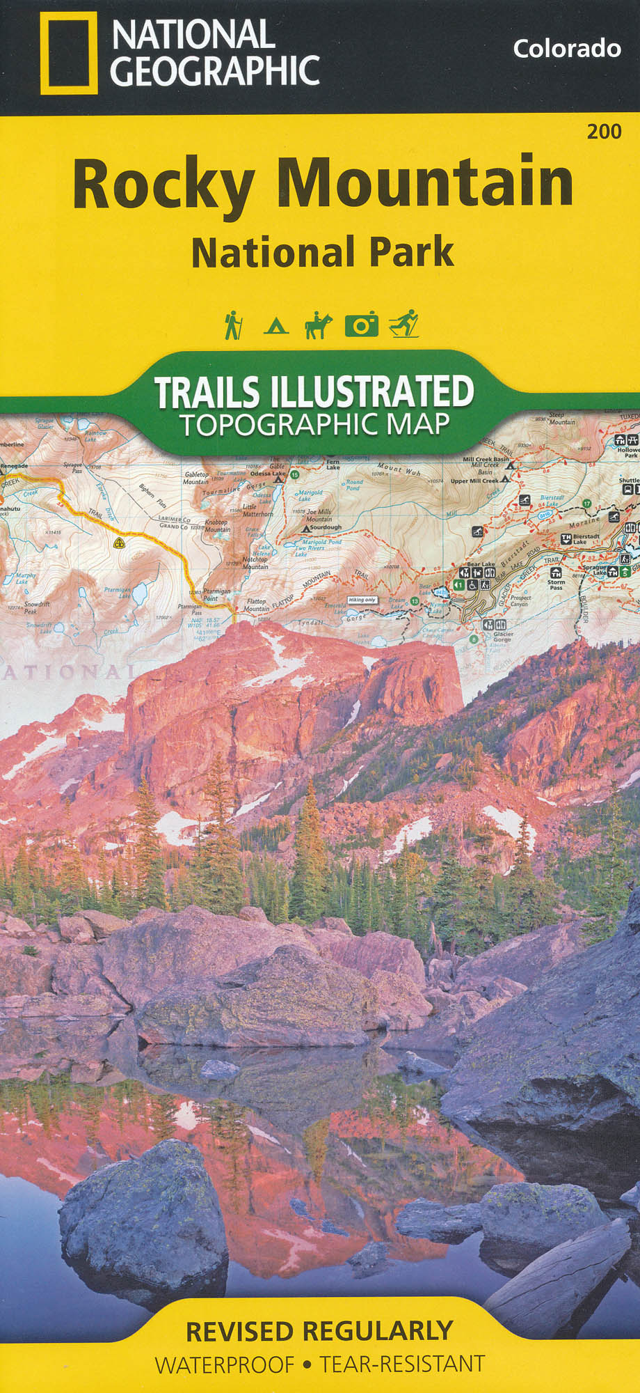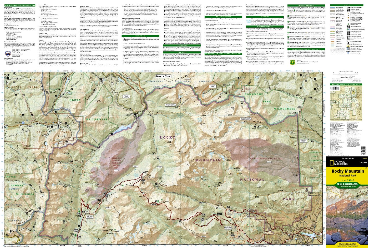 Velice detailní oboustranná mapa na syntetickém papíře odolném vodě a poškození z edice Trails Ilustrated map světoznámého National Geograpic Society. Všechny mapy z této série jsou založeny na přesných reprodukcích topografických podkladů USGS (U.S. Geological Survey) a poskytují tak nejpřesnější údaje. Mapy navíc obsahují cenné tipy o místní divočině a zobrazuje zajímavá místa regionu, cesty pro pěší, campy a mnoho dalšího.