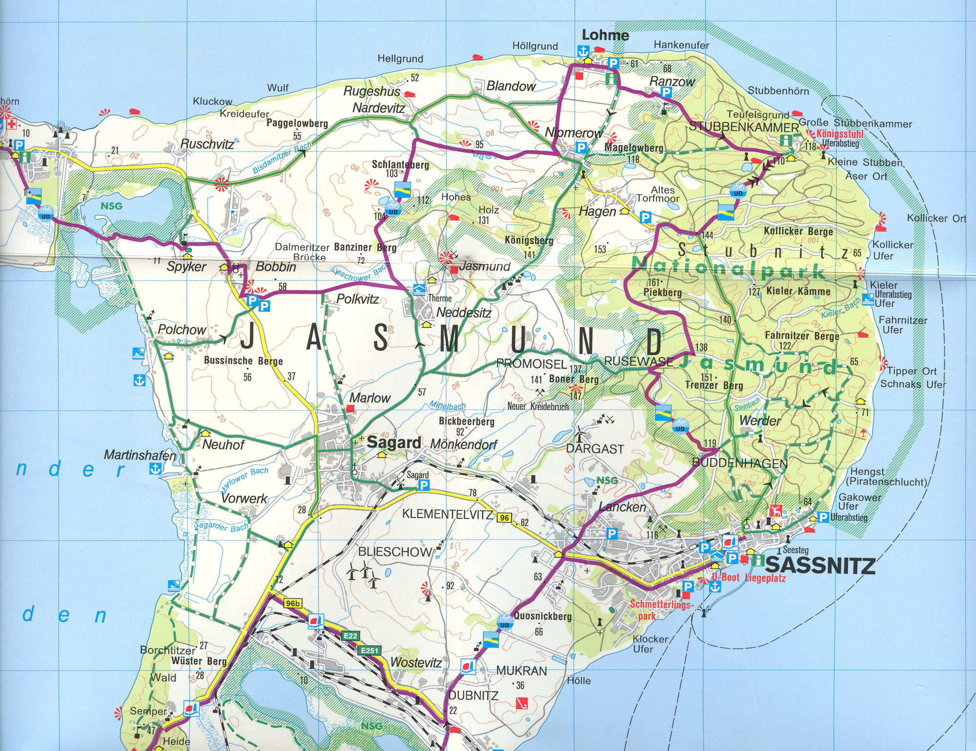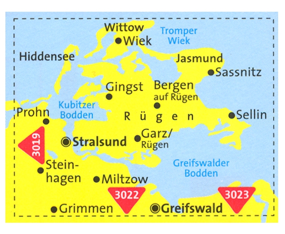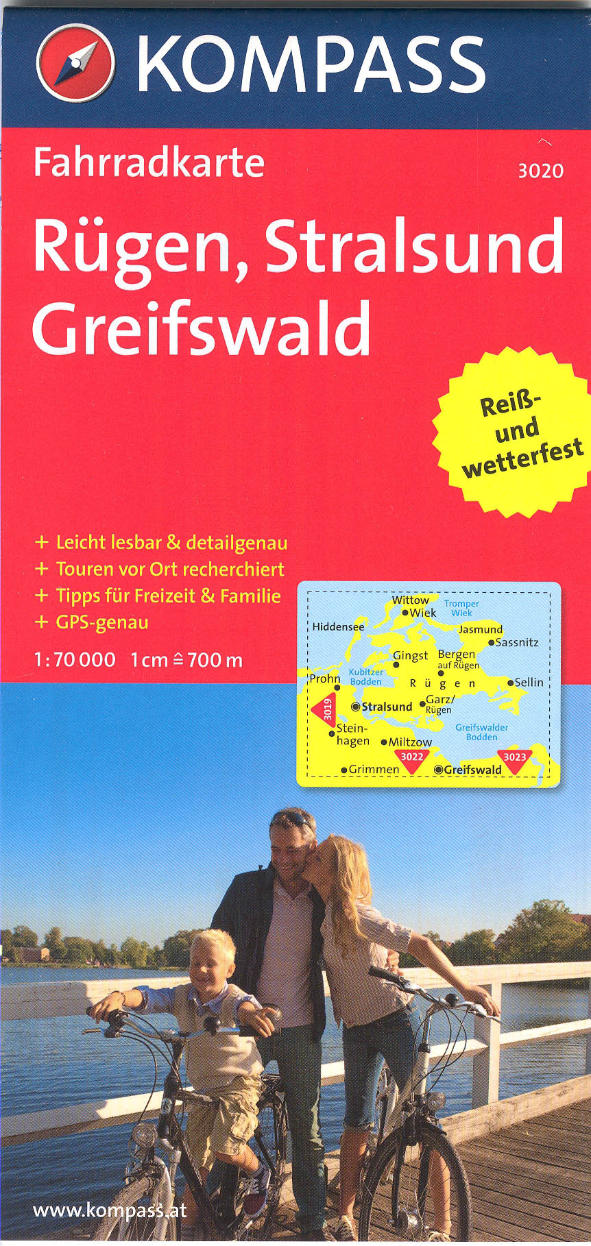 Rujána (Rügen), Stralsund, Greiswald 1:70t mapa #3020 KOMPASS