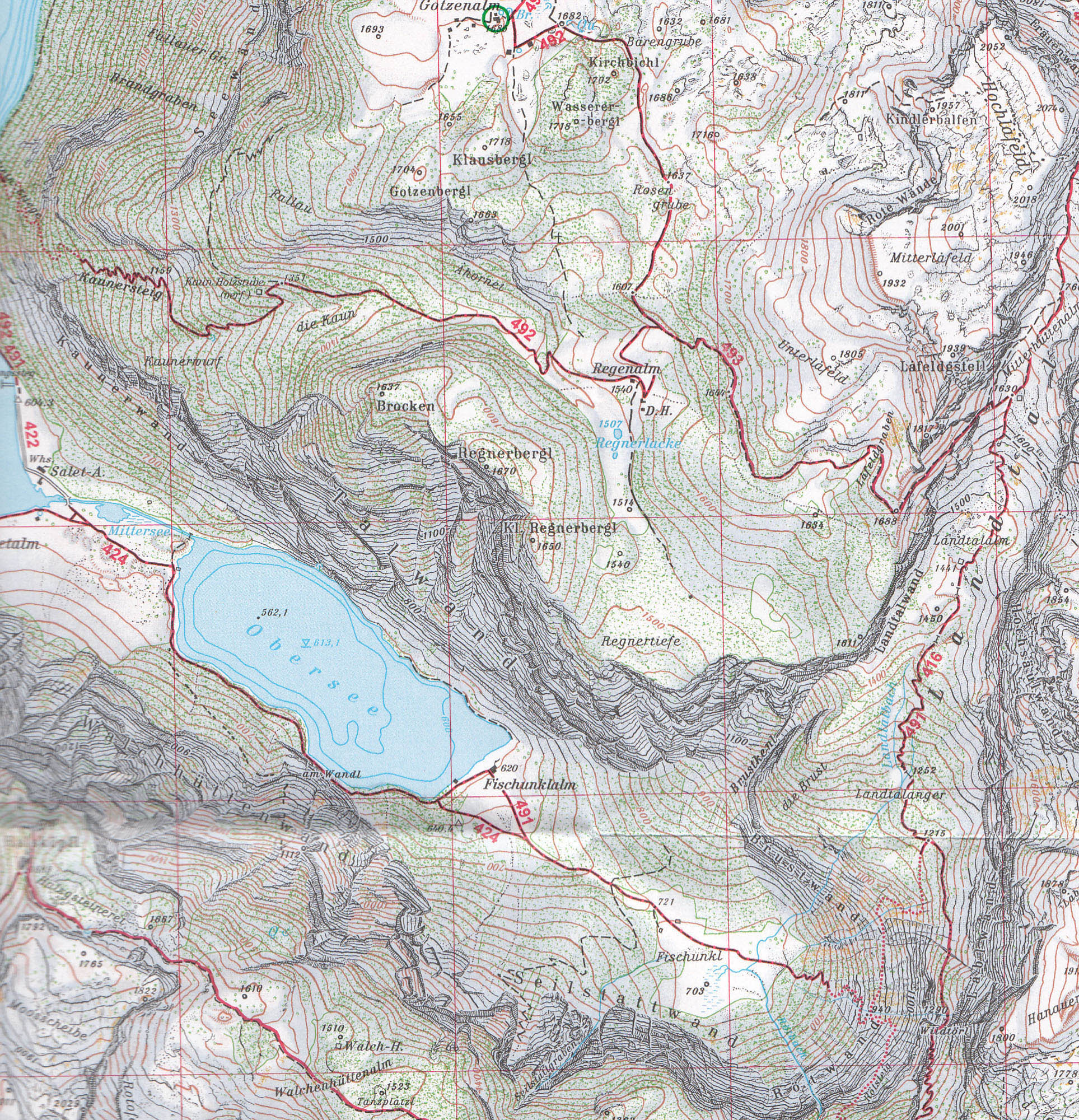 Velice podrobná mapa ze série turistických a lyžarských map vydávaných Německo-Rakouským alpským spolkem. Vrstevnice jsou zakresleny po 20 výškových metrech. Na mapě jsou vyznačeny turistické trasy s úseky fixního jištění, kempy, horské chaty a jiná ubytování. Legenda mapy je v němčině.