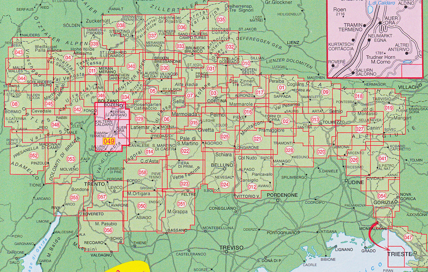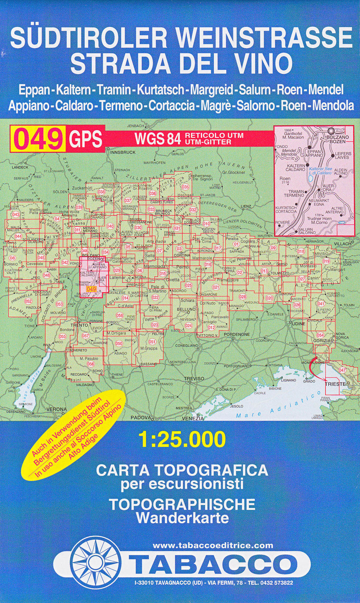 Südtiroler Weinstrasse, Strada del Vino 1:25 000 turistická mapa TABACCO #49