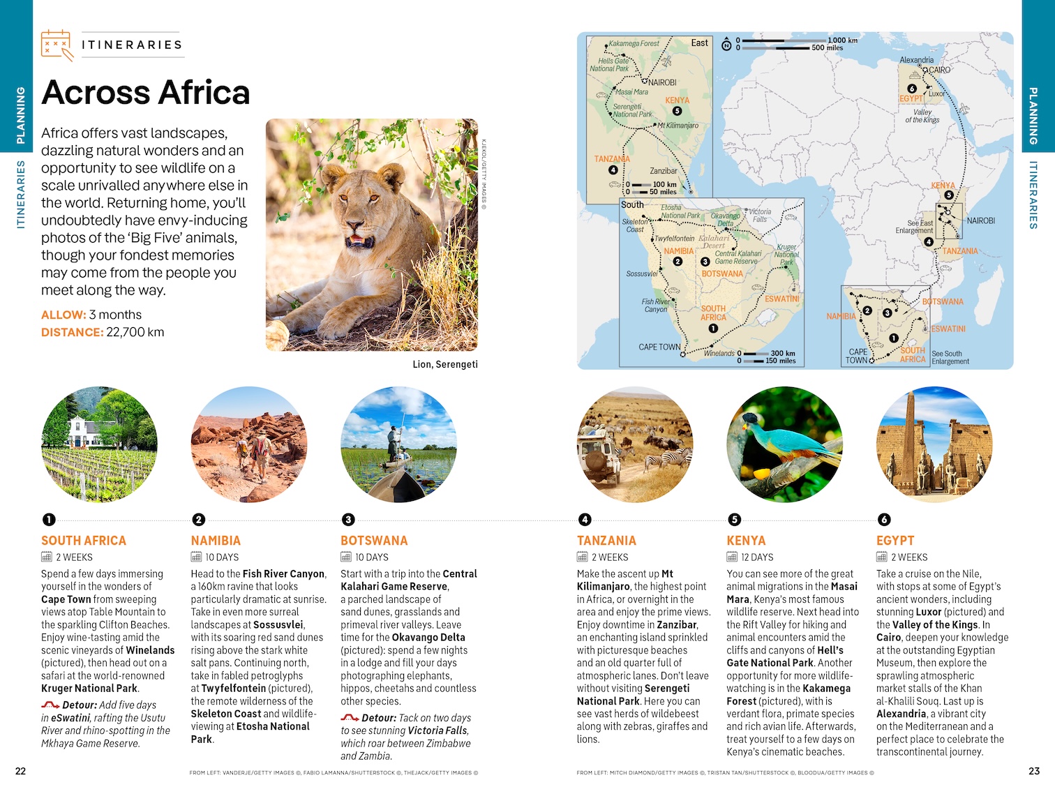 Itineraries from 5 weeks to 3 months help travellers to plan ahead and explore a multitude of landscapes across the continents