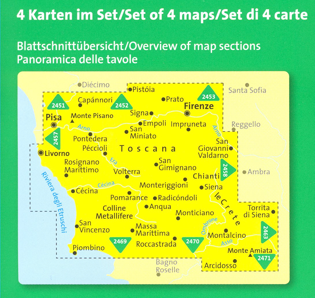 Toskánsko - Toscana sada 4 map 1:50t #2440 KOMPASS