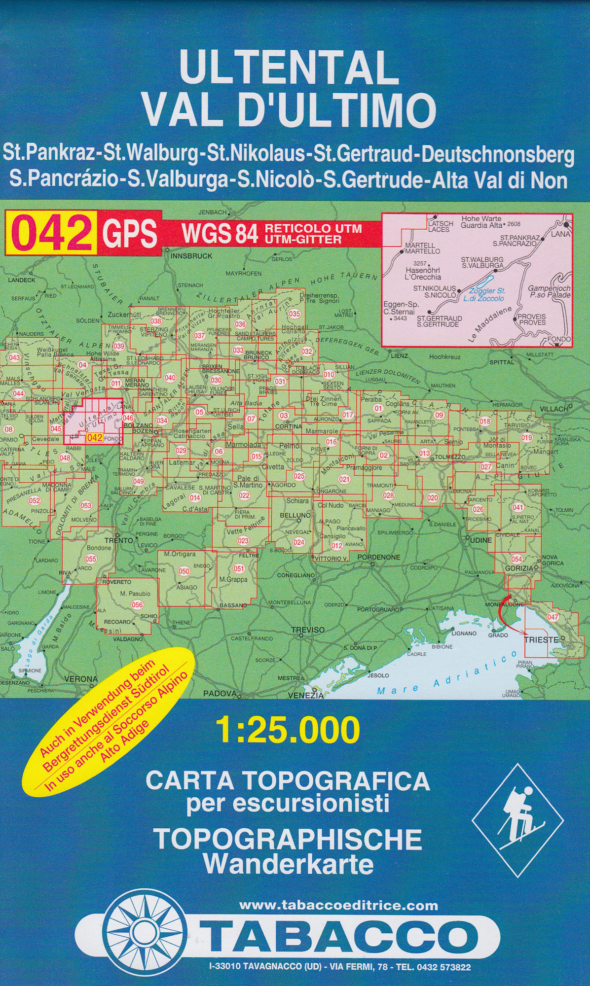 Ultental, Val d´Ultimo 1:25 000 turistická mapa TABACCO #42