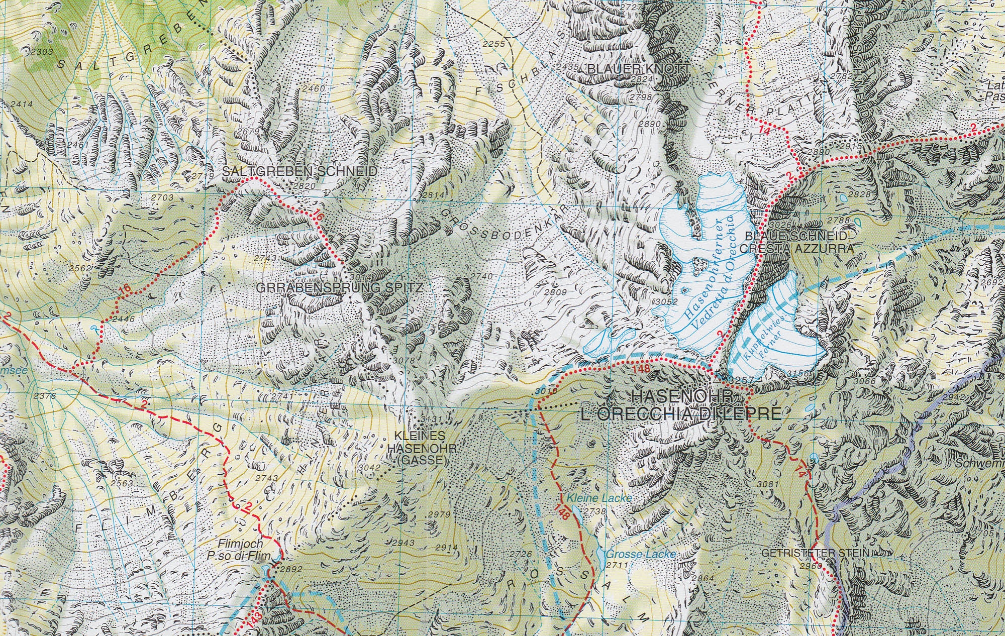 vrstevnice po 25m, stínovaný reliéf, značeny všechny druhy tras včetně "Alte Vie" a "via feratta", ubytování, lanovky, zajímavá místa atd. WGS 84