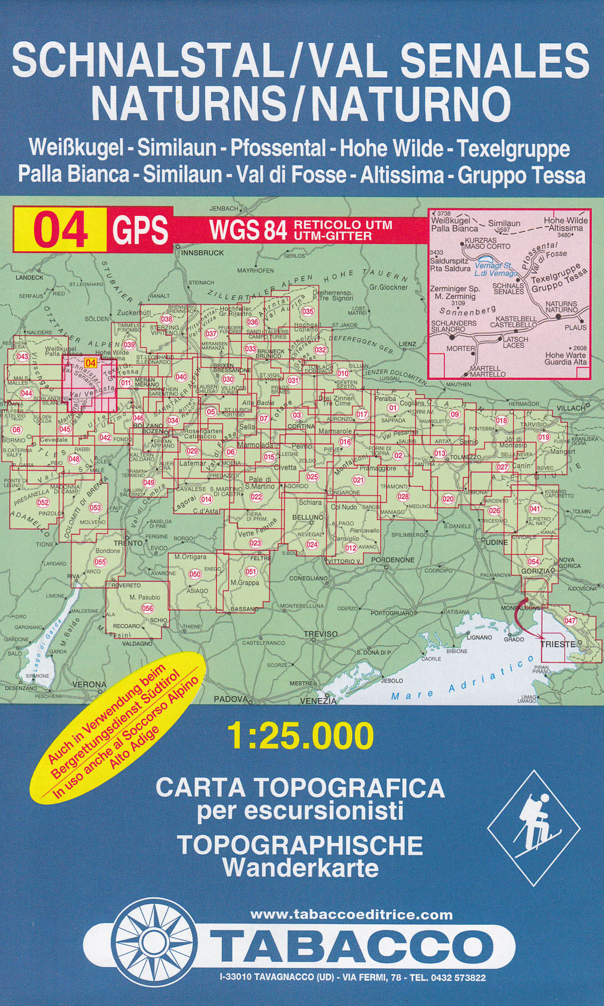 Val Senales, Naturno 1:25 000 turistická mapa TABACCO #04